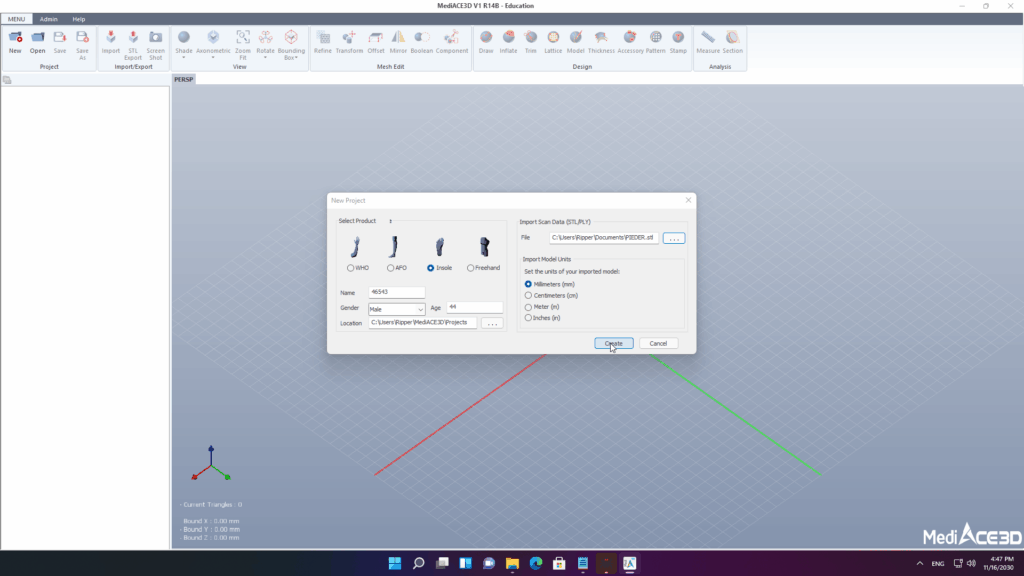 Main purpose: CAD software for designing customized medical orthoses (AFO, WHO, CRO, Insole)