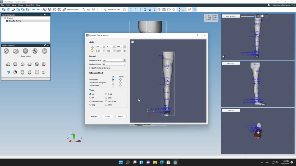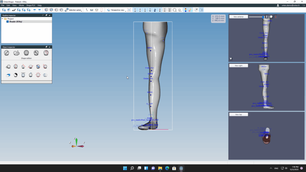OrtenShape is a specialized software in the orthotics and prosthetics (O&P) field, designed for 3D model rectification and customization. It helps orthopedic specialists and podiatrists transform patient foot scans or manual measurements into precise digital models for orthoses and prostheses, ready for production with CNC machines or 3D printers