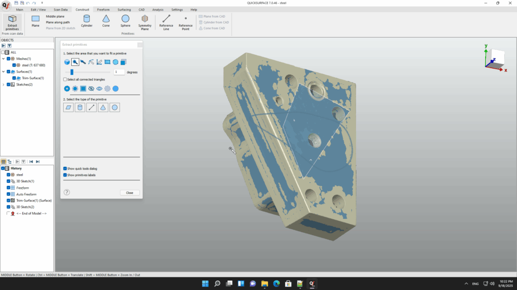 QuickSurface 2025 v7.0.46 یک نرمافزار مهندسی معکوس سهبعدی است که با ابزارهای پیشرفتهاش، فرآیند تبدیل دادههای اسکن سهبعدی به مدلهای CAD را سریعتر، دقیقتر و سادهتر کرده است.